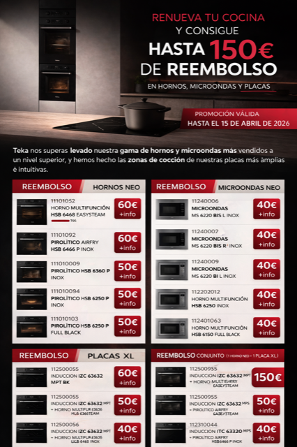 Reembolso en hornos Teka NEO